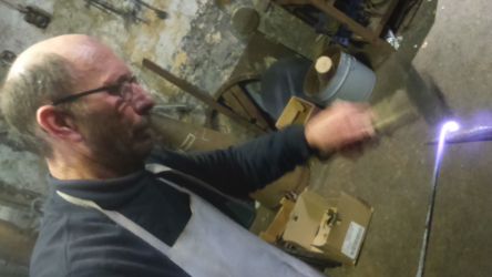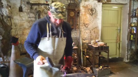 “Héritier d’une lignée de forgerons depuis onze générations, Alexandre Burlet travail le métal dans la forge familiale située à Natoye. Ses créations variées s’inspirent de style médieval et sont réalisées selon des méthodes ancestrales. Sa passion l’amène à perpétrer des gestes immuables qui permettaient autrefois de façonner des objets ou des outils qui pouvaient servir à plusieurs générations successives. Il expérimente ainsi au gré de ses envies les matières et les techniques anciennes.”